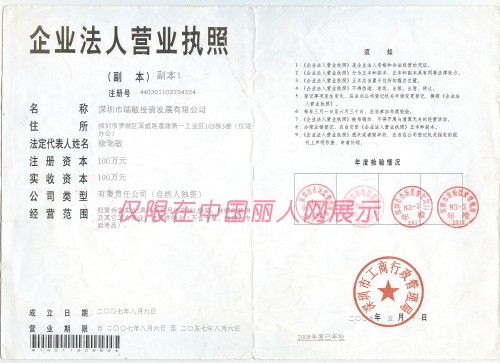 瑞敏投资/深圳市瑞敏投资发展有限公司/营业执照