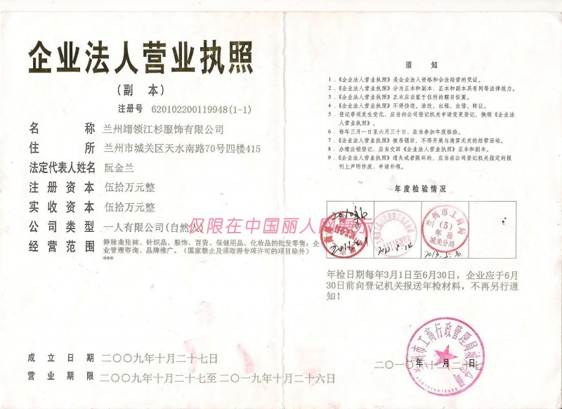 翊领江杉服饰/翊领江杉服饰有限公司/营业执照