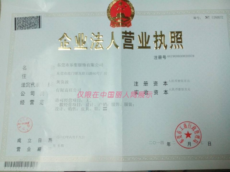 乐姿服饰/东莞市乐姿服饰有限公司/营业执照