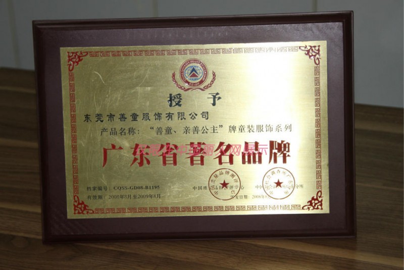 善童服饰/东莞市善童服饰有限公司/荣誉证书