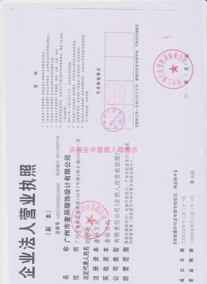 麦辰服饰/广州麦辰服饰设计有限公司/营业执照