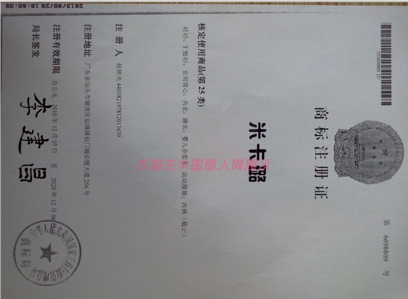 米卡璐品牌证书