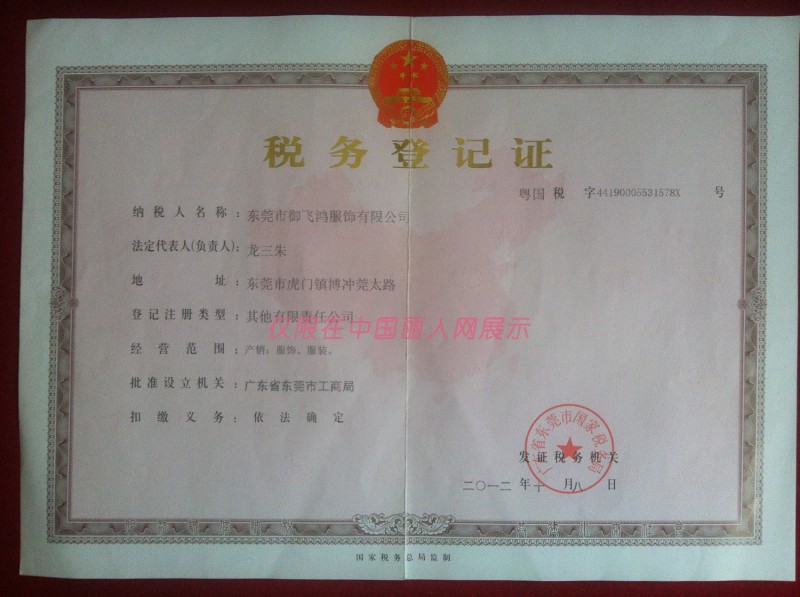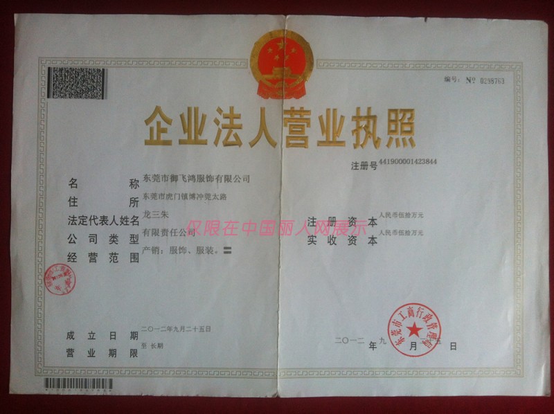 - 御飞鸿服饰/东莞市御飞鸿服饰有限公司/营业执照