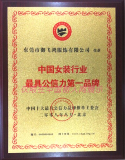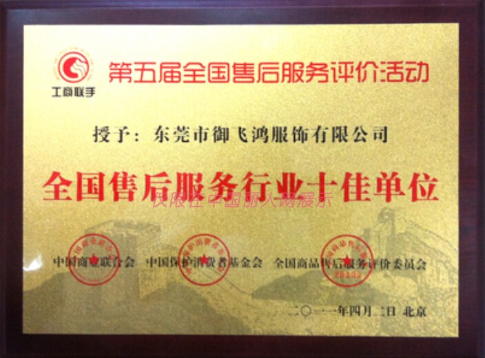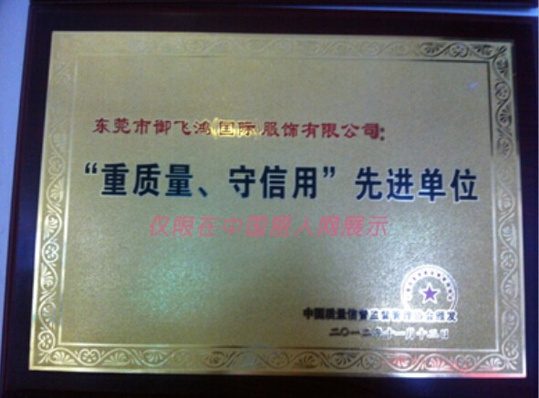 - 御飞鸿服饰/东莞市御飞鸿服饰有限公司/荣誉证书