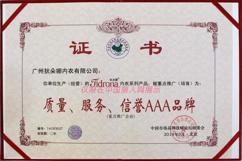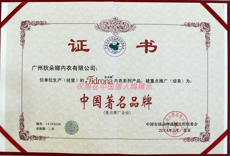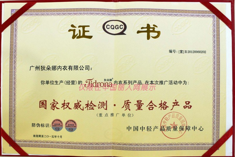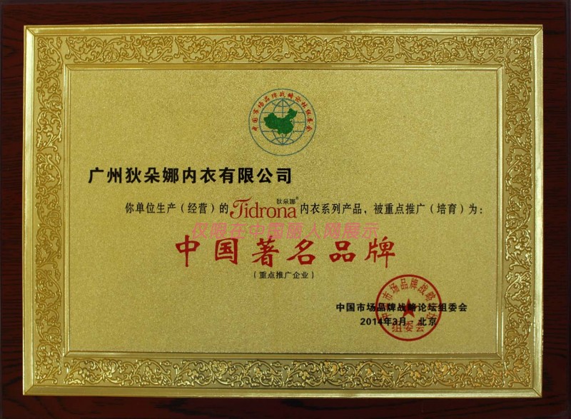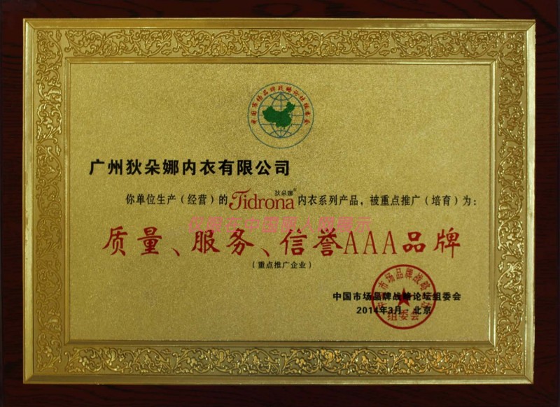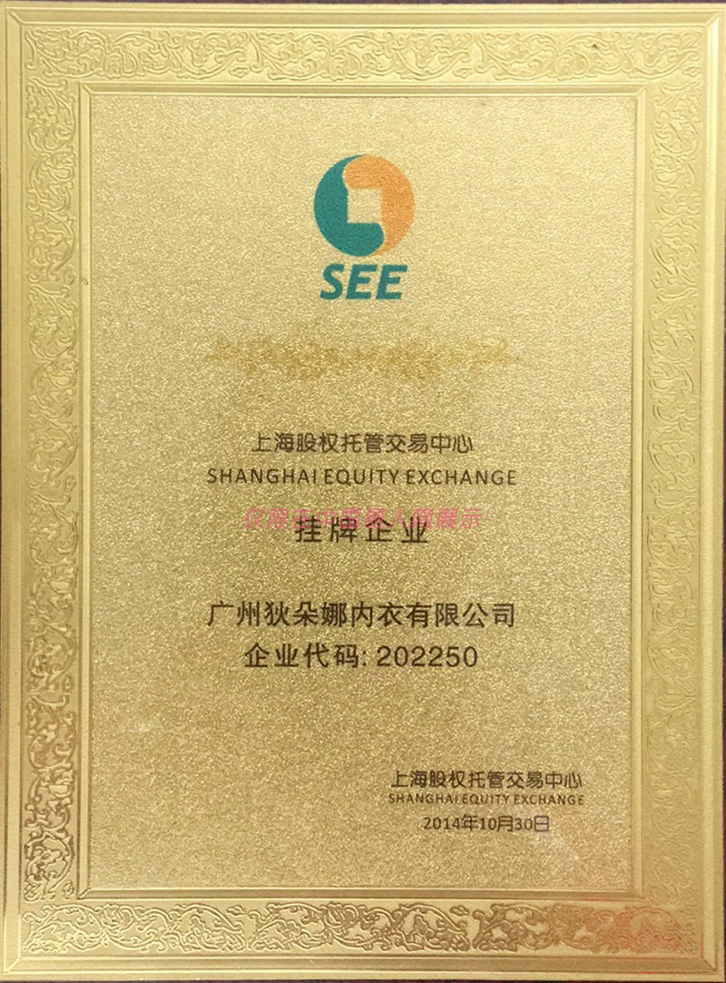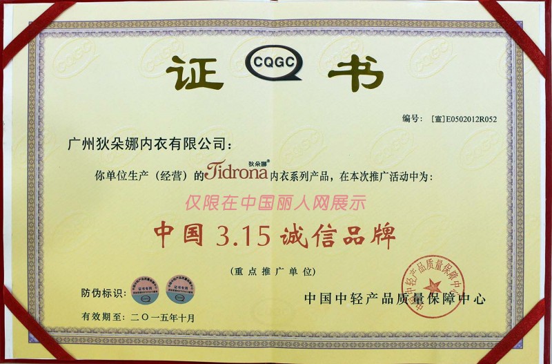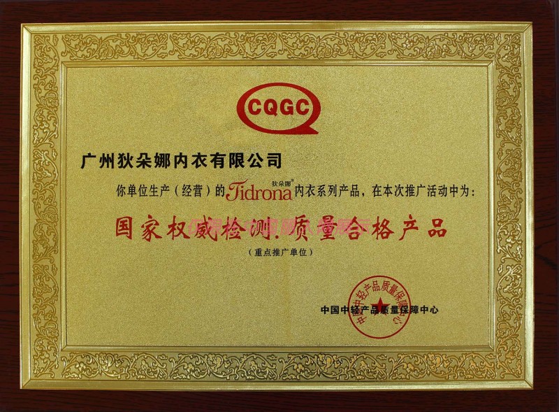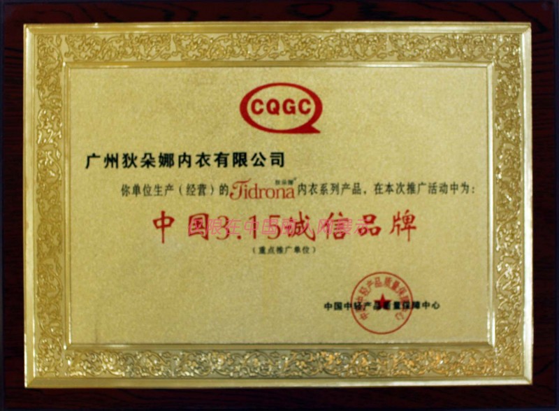 - 狄朵娜内衣有/广州狄朵娜内衣有限公司/荣誉证书