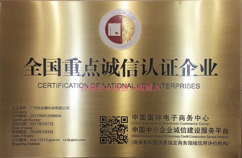 - 广州狄朵娜内衣有限公司荣誉证书