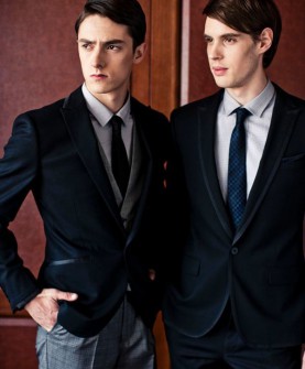 款式上则更加注重礼服的“精神”,原本略带单调的男装面料上采用时尚的彩色真丝拼锻,抑或是将配饰的元素运用到服装上,可脱卸的驳头更加注重礼服的实用性即:“经典类的绅士精神”,“生活类的时尚精神”,“时尚类的NO.1精神”,面料上也运用了部分混搭的元素,例如哑光与亮光的结合,精仿与粗纺的结合,不同材质的混搭,在此基础上也形成了礼服的另类风尚。