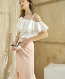 E-KISS的核心产品是最能展现女性魅力的各种长短不一的连身洋装,或飘逸灵动或曲线玲珑妙曼。绚烂夺目的印花图案是品牌的设计灵魂,与国际流行时尚同步是品牌的设计标杆,精致而新颖的手工装饰工艺是品牌的设计精华。