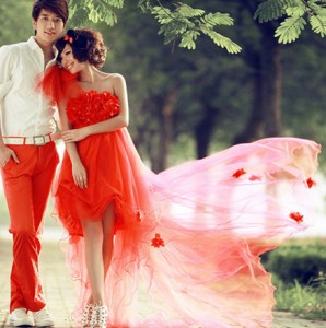 红色婚纱礼服 红色浪漫享受甜蜜幸福