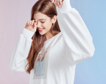 除了连帽卫衣,圆领卫衣也是更多人的选择,圆领会更加俏皮可爱,这件白色卫衣就十分的简单,非常适合在日常穿搭,胸口的印花图案更加甜美可爱,搭配牛仔裤青春靓丽,非常抢眼,是春季的必备穿搭哦!