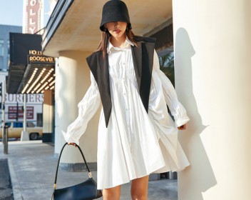 如果喜欢简单一点的风格,就可以选择这件白色衬衫裙,不规则的裙摆更加时尚个性,裙子长度在膝盖以上,对小个子女生也是非常友好的,搭配马丁靴或者帆布鞋都可以,裙子非常的减龄,具有青春气息,也适合在春天穿呢!