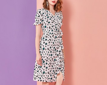 小清新的碎花连衣裙也是春日的首选,这件连衣裙更加的知性优雅,清新舒适的花纹和V领的设计让裙子更加具有气质,袖口和裙身都采用了荷叶边的设计,更加具有女人味,裙长过膝,更显身材高挑,在春天穿温柔又大气。
