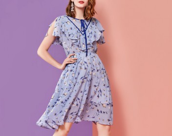 春天是万物复苏的季节,这样一个生机勃勃的春天就应该穿一些具有活力的裙子,这件印花连衣裙清新舒适,胸口的荷叶边设计更加甜美优雅,采用收腰设计更能展现你的身材,紫蓝色会更加温柔,在春天穿最合适不过了。