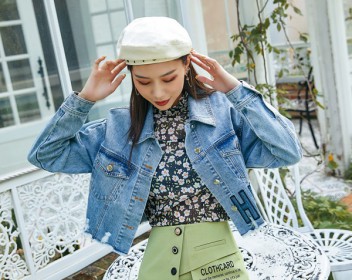帅气的牛仔外套,街头感十足,搭配碎花打底,甜美文艺风就立马出现了,碎花非常具有春天的气息,搭配牛仔更加具有活力,在选择清新的绿色半裙,可以更快的抓住人们的视觉感受,让你轻松的感受到春天的氛围,非常亮眼的穿搭。