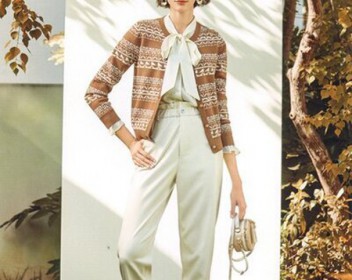提花针织开衫会更加有质感,搭配简单的白色系带衬衫,会更加随性,有规则的针织花纹,会加优雅随性,白色衬衫冲淡了厚重感,搭配白色休闲裤,非常日常的春季穿搭。