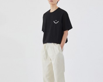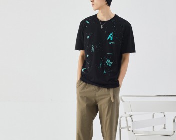 黑色上衣是非常适合微胖的男生的,身材显瘦的男生们选择宽松有落肩效果的款式也是非常棒的,那么怎么挑选呢?小编今天给大家推荐的第一款是这款带有表情印花的黑色T恤,纯色的黑色相对来说是比较沉闷的,在搭配上就要非常上心思需要用配饰来点缀,这款带有印花的黑色T恤相对来说就比较省力了,简单的一个小表情就能够很完美的柔和了整套搭配,显得更加阳光活跃,下身的搭配尽量选择浅色系的款式,例如米色、白色系列的会更加适合哦~