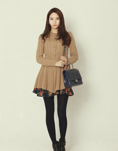 开衫式毛衣裙拼接小碎花 带来青春气息