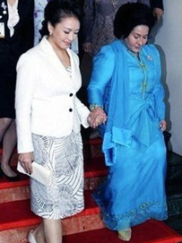 在雅加达当地出席活动时,彭丽媛以一身演出服般的造型华丽登场,瞬间博得众人眼球,绸缎风格的大红色连衣裙鲜活明亮,跳跃感十足,外搭透视款不规则罩衫,硬朗立体,整个人显得精气神十足。同样是将中国元素演绎到极致,这次我们发现了代表吉祥的圆形图腾。